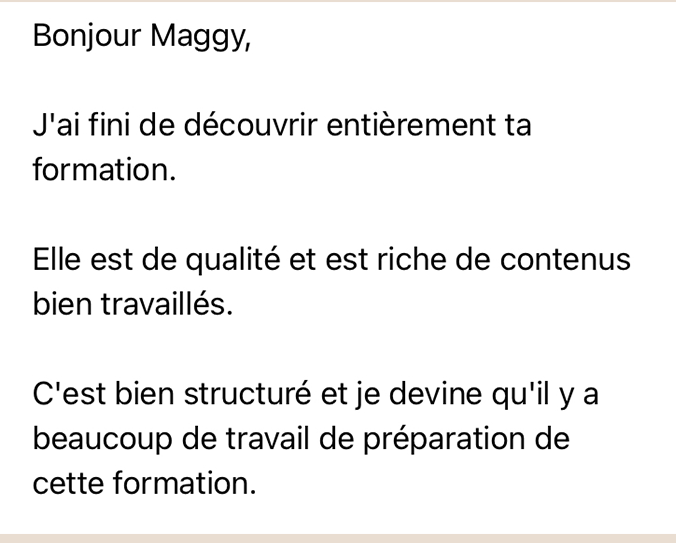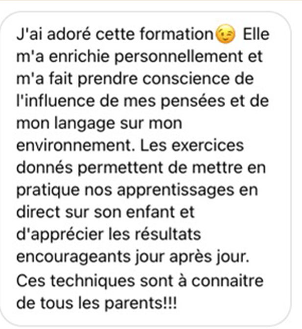 Elle est respectueuse, engageante, simple à suivre, même si tu n’as pas beaucoup de temps, même si tu n’as pas de formation en pédagogie, et surtout: elle donne des résultats visibles en 3 semaines.